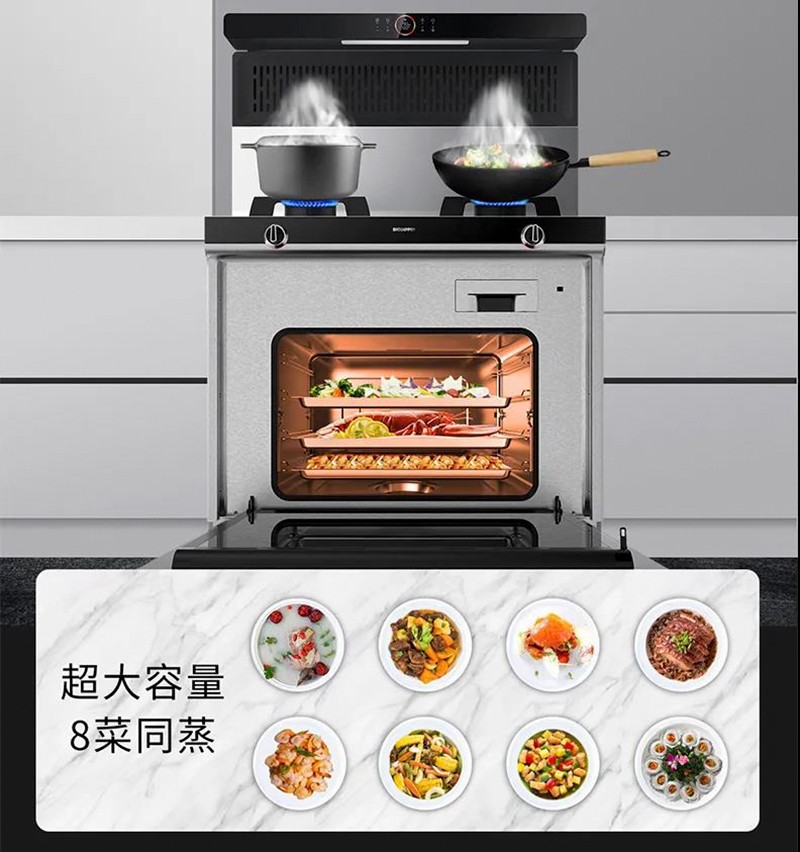 蒸菜不止一味。北斗星A5配備的蒸箱有著66L大容積,一鍵蒸制8個菜肴也完全可以。同時,一改普通的蒸鍋蒸制食物(蒸汽通常會在頂部凝結成水汽滴入食物,破壞食材的口感和營養),而北斗星A5采用上下同蒸,均勻受熱,杜絕水汽回流,頂部無冷凝水,8個菜同蒸不串味,這樣的蒸菜更加美味。