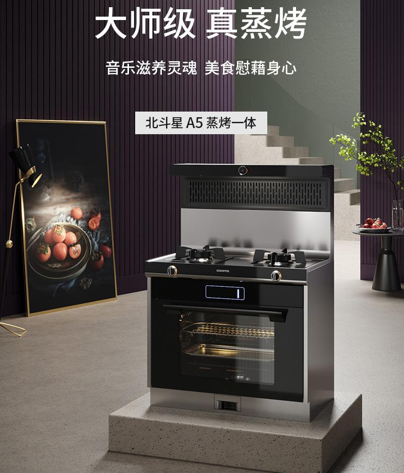 北斗星A5蒸烤一體集成灶打破傳統油煙機的固有形態,在外形上更加美觀大方,極易融入不同風格的廚房。另外還從源頭上解放頭頂的位置,還給吊柜,讓廚房整體裝修統一和諧。
