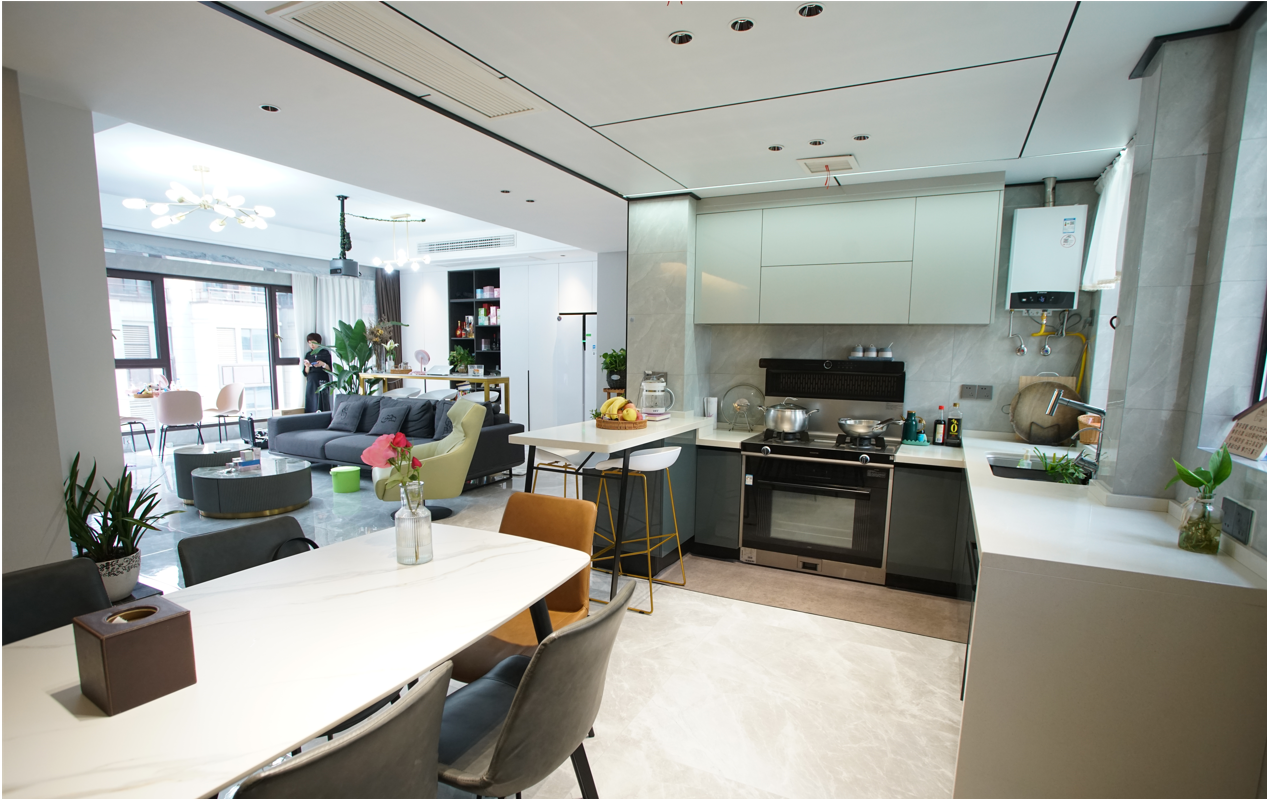 易女士家是開放式廚房,進(jìn)入家門第一眼看到的就是客廳和廚餐廳,整個(gè)空間是一體的。易女士說(shuō),“集成灶離餐桌1米左右,平時(shí)一家人坐在餐桌上吃飯,邊爆炒邊吃飯,一點(diǎn)油煙味兒都聞不到。”