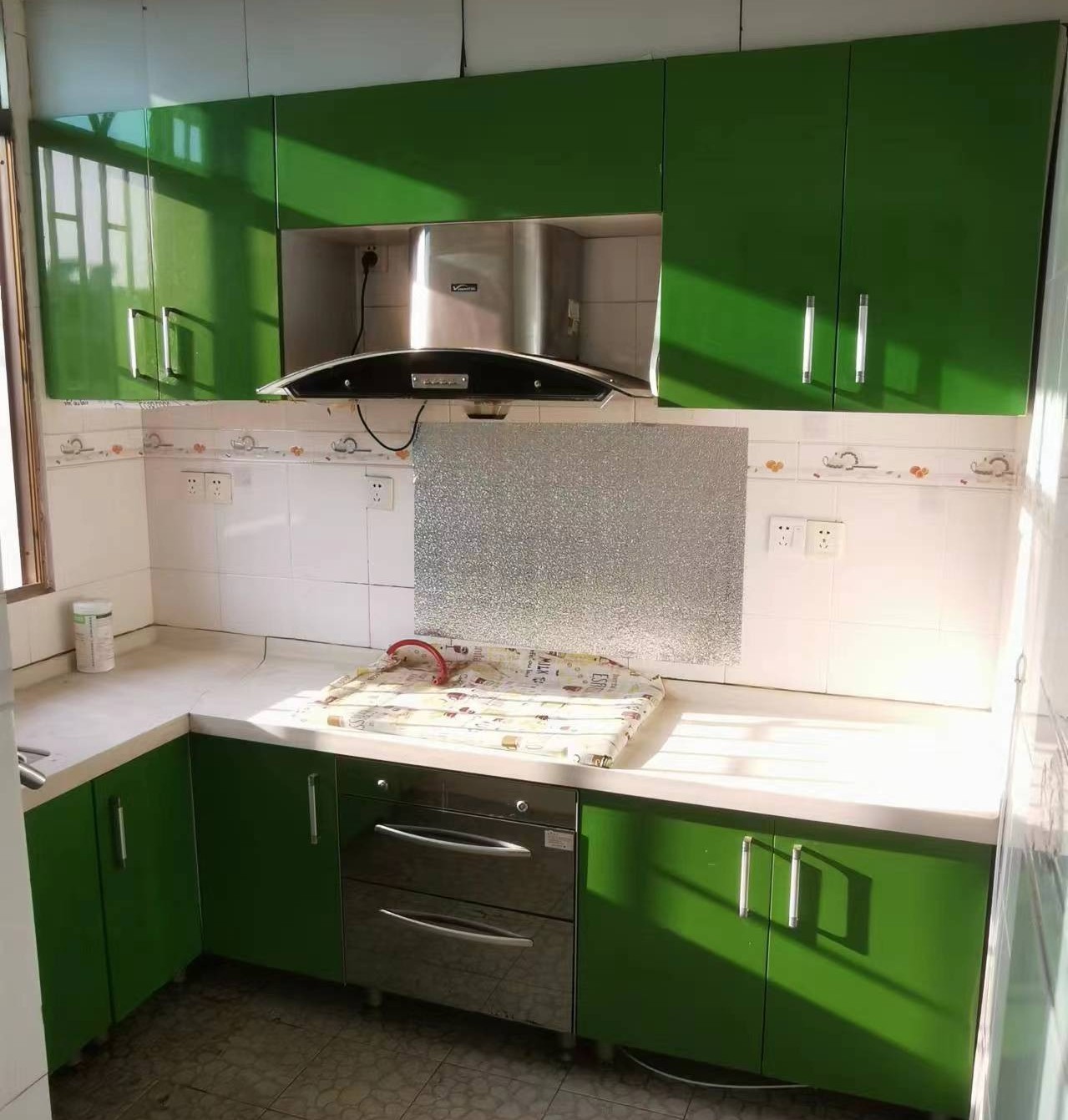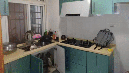 話不多說,我們先來看一下改造之前的廚房吧。老套的廚房搭配,綠色真的很老氣,瓷磚發(fā)黃發(fā)黑,油煙機(jī)陳舊損壞、裝修布局過時......這樣的廚房你還會有下廚的欲望嗎?