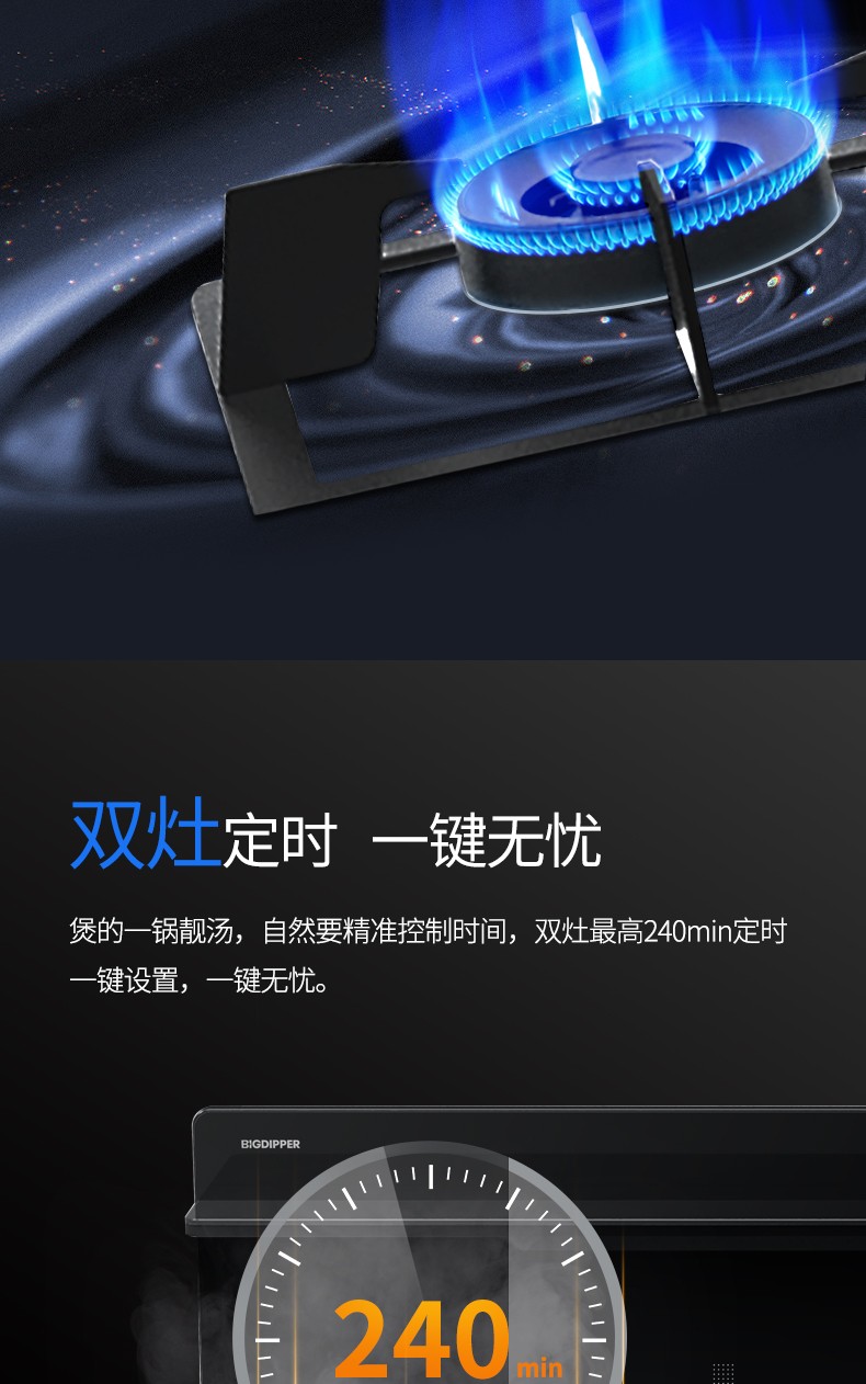 雙灶最高240min定時,一鍵無憂